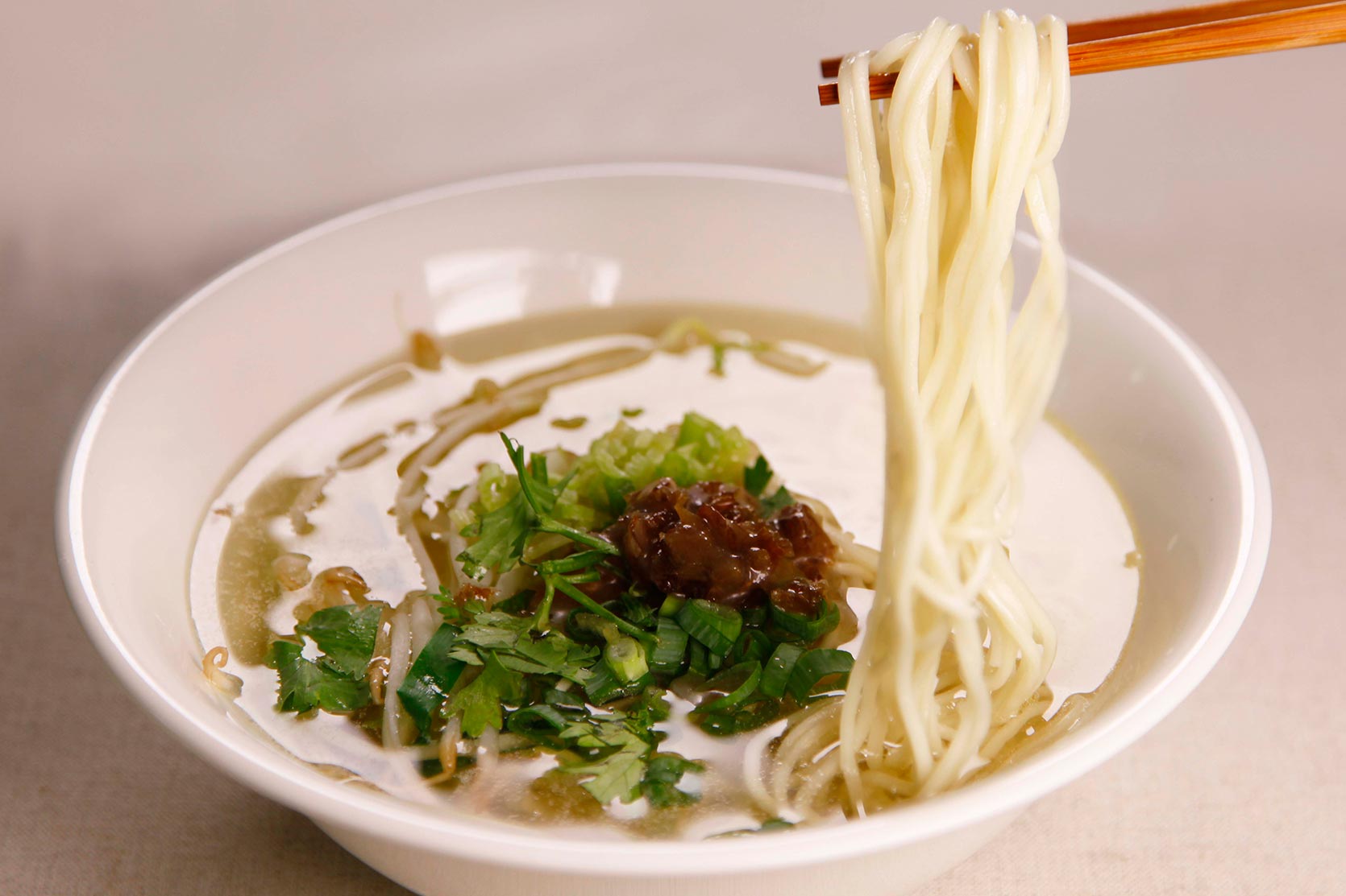 沒有多餘的裝飾,僅以高湯搭配些許蔥花、芹菜,最後淋上肉燥,就是最懷念的古早味乾麵。